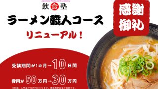 わずか10日間でラーメン職人に!飲食塾の「ラーメン職人コース」がより短期・よりお得価格の受講料にリニューアル!